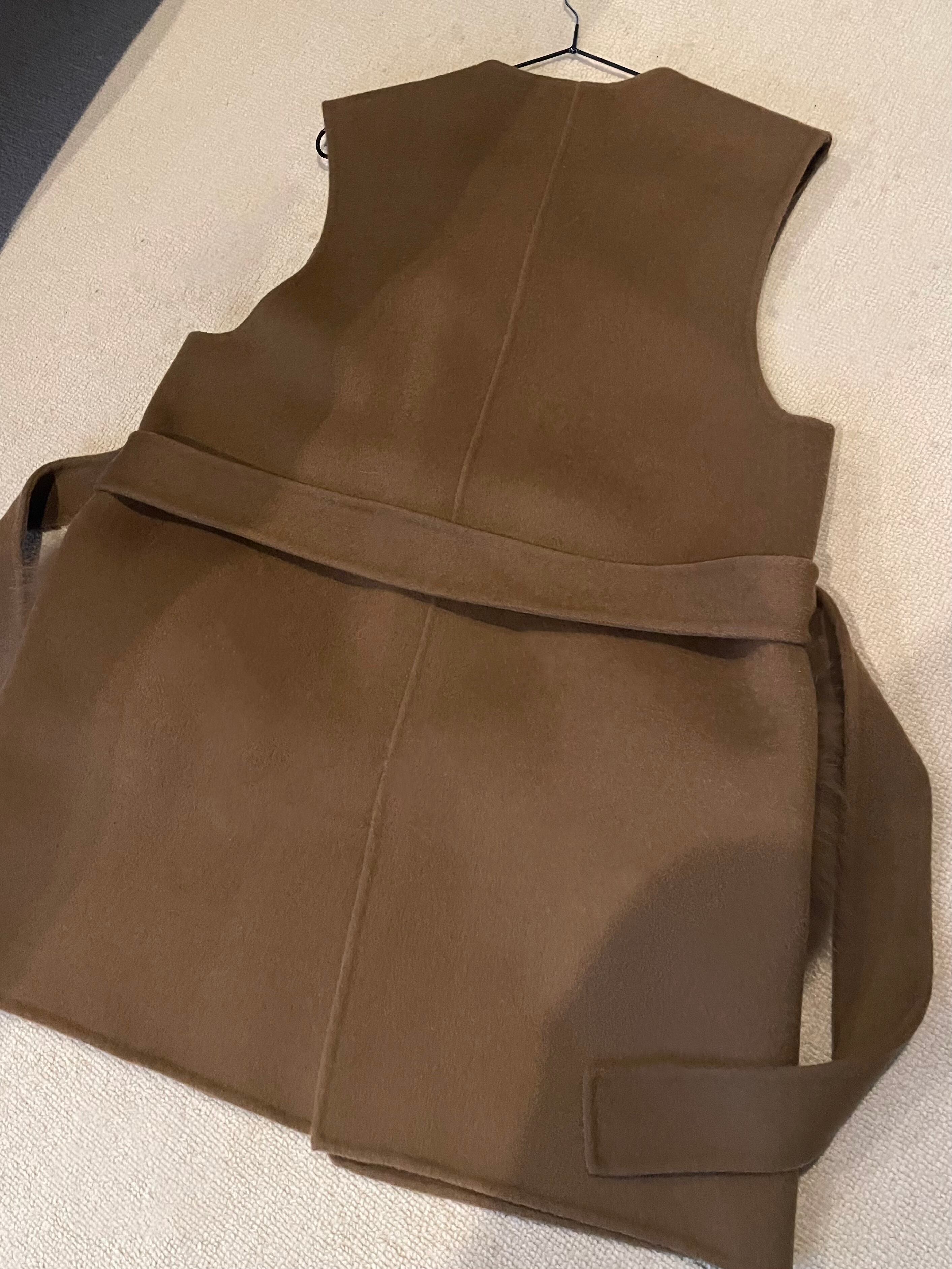ウールで生地もしっかり、軽くて着やすいベストです。取り外し可能な紐もついていて、コーデの幅も広がる一枚です。